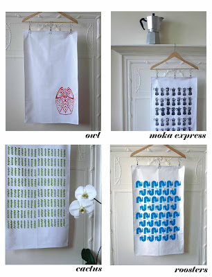 These lovelies are available to purchase in my etsy and folksy shops now. New designs include moka express, roosters, owl, cactus and robots. All of my designs are screen printed by hand onto 100 % cotton, using water based inks. No toxic chemicals used. They are safe to wash in the machine at a temperature that is below 40 degrees. Not only safe for the precious tea towels, but also better for the environment. Washing by hand would be best though...